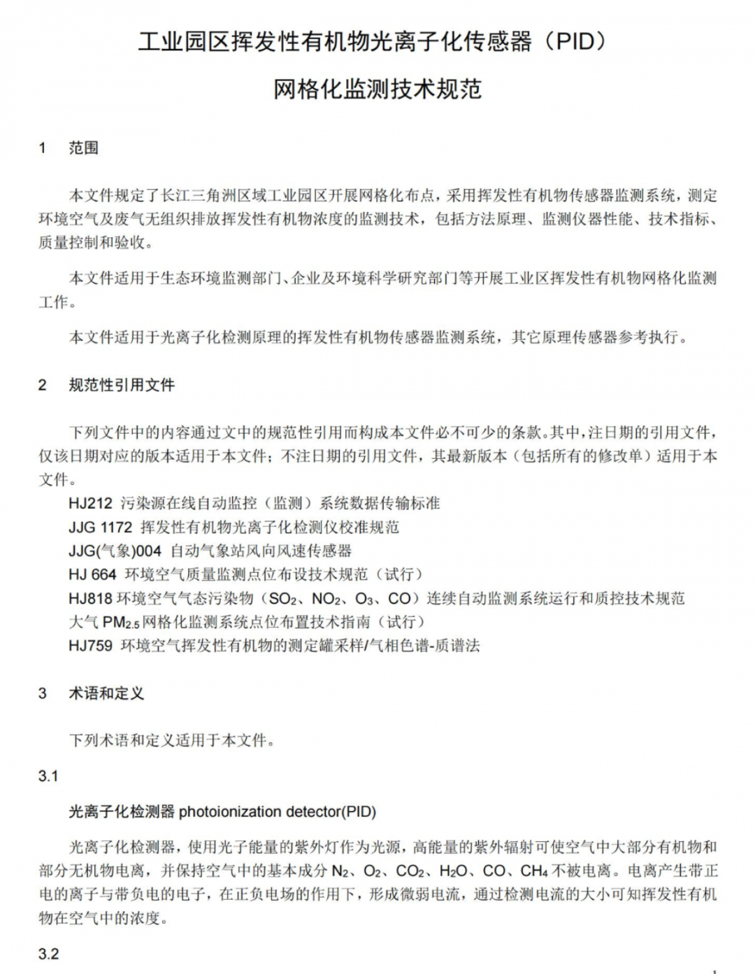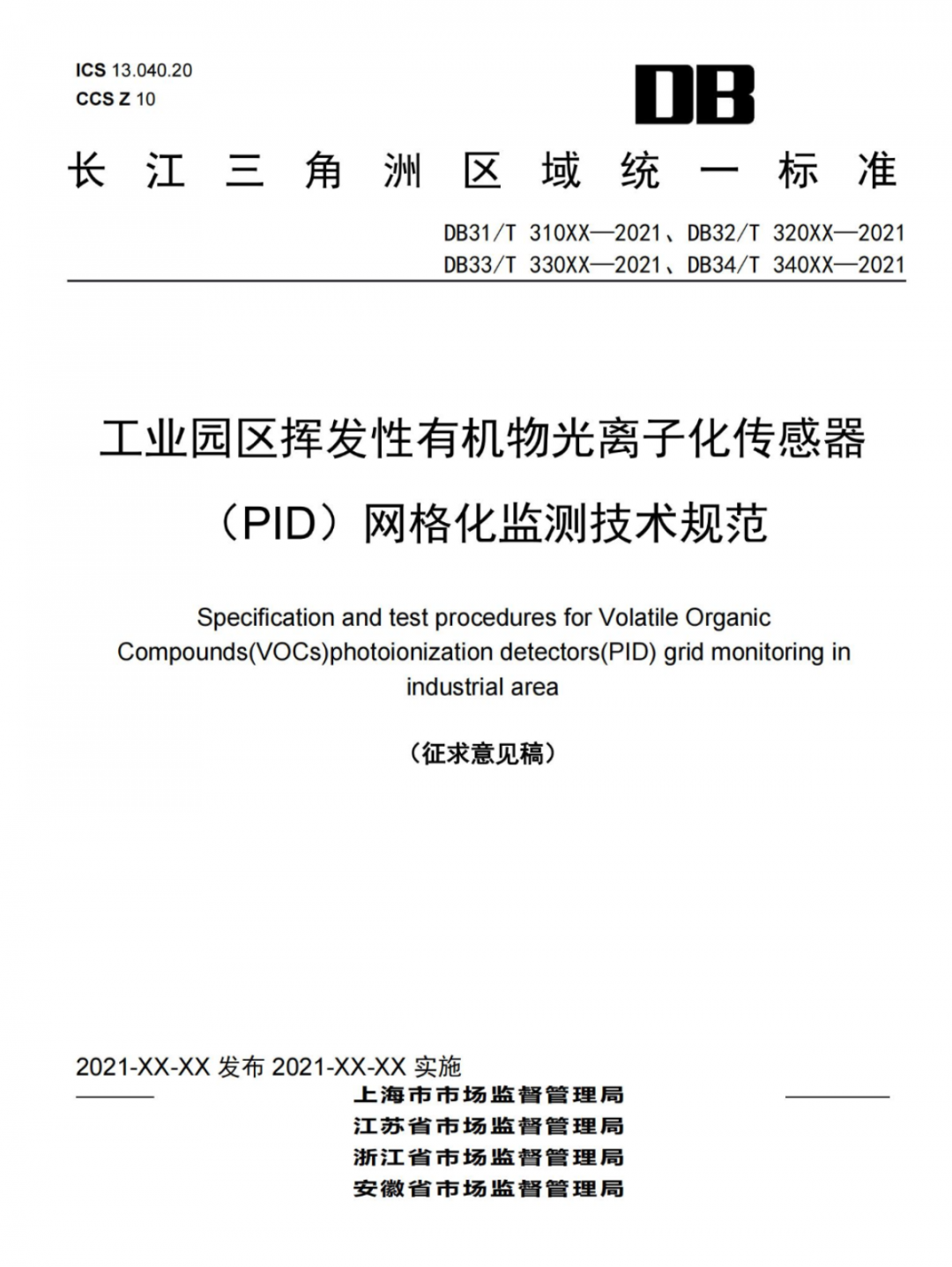 • 挥发性有机物(VOCs)是一类重要的环境污染物,严重威胁着环境和人类健康,近年来也出不很多相关的冶理及监测的规范和标准。但是针对PID光离子原理的监测方法一直没有一个明确的标准。针对这一情况,为推进长三角一体化发展战略实施,上海市生态环境局、江苏省生态环境厅、浙江省生态环境厅和安徽省生态环境厅共同组织起草了长江三角洲区域统一标准《工业园区挥发性有机物光离子化传感器(PID)网格化监测技术规范》(征求意见稿)。